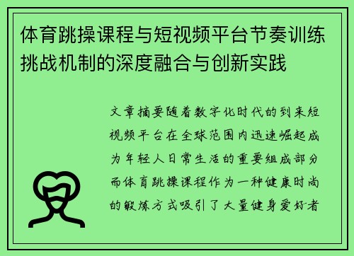随着科技的发展和教育方式的不断创新,体育体操训练与平台课程标签系统的结合逐渐成为提升体操训练效果的关键。如何通过科学的标签系统,对体操训练过程进行更加精确的管理和优化,是当前体育教育领域亟待解决的一个重要课题。本文将围绕体育体操训练与平台课程标签系统的有效对接与优化研究展开,首先介绍平台课程标签系统的基本概念及其在体育体操训练中的应用意义,接着从训练目标的精准制定、数据化的训练监测、个性化课程设计...
